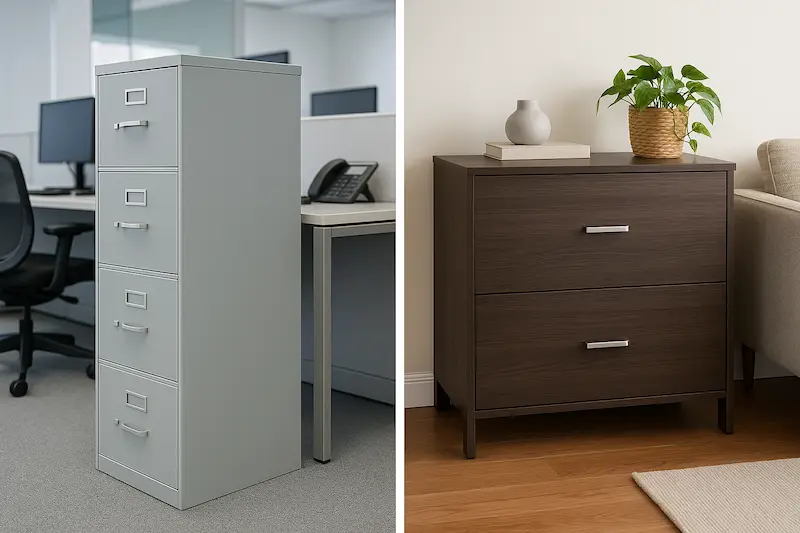 فایل ایستاده یا عمودی برای فضاهای کوچک‌تر عالی است. این مدل مناسب فولدرهای آویز و زونکن‌های بزرگ است. فایل جانبی با کشوهای عریض‌تر به راحتی در کنار میز مدیریت یا کارشناسی جای می‌گیرد و برای شرکت‌هایی با حجم زیاد اسناد ایده‌آل است. قفسه باز برای محیط‌هایی مناسب است که دسترسی سریع به مدارک روزانه اهمیت دارد. فایل سیار روی چرخ قرار می‌گیرد و به راحتی می‌توان آن را بین بخش‌های مختلف حرکت داد.