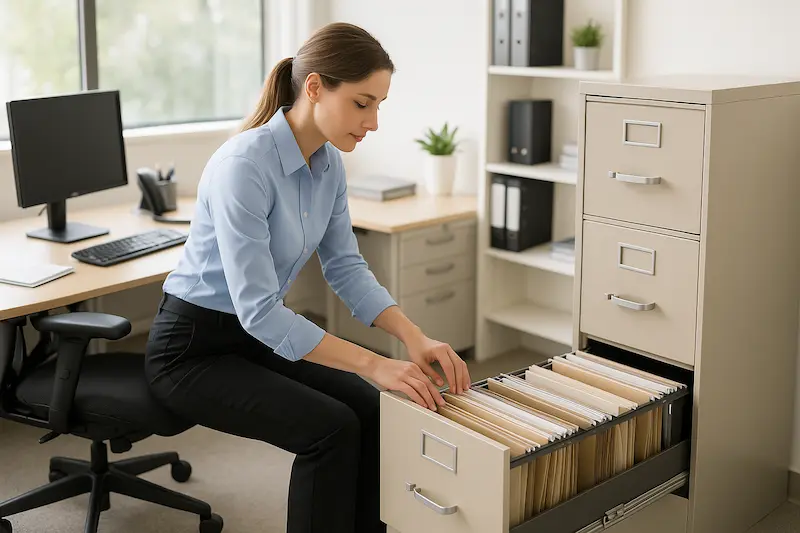 یکی از نکات بسیار مهم، محل دقیق قرارگیری فایل اداری است. قرار دادن فایل در نزدیک‌ترین نقطه به میز کار، راندمان را بالا می‌برد و سرعت دسترسی به اسناد را افزایش می‌دهد. استفاده از رنگ و برچسب برای هر کشو یا طبقه از فایل، طبقه‌بندی حرفه‌ای اسناد را تضمین می‌کند و در زمان صرفه‌جویی می‌کند.