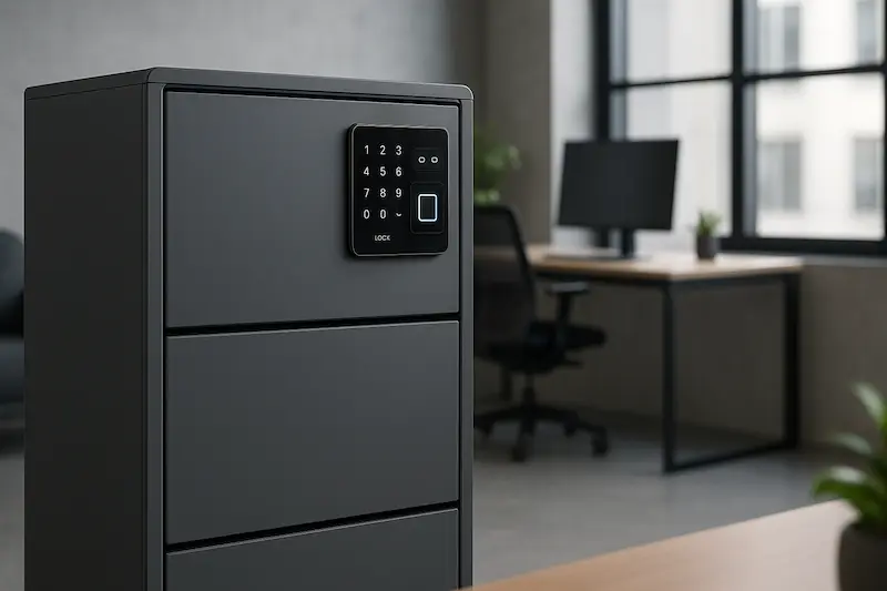 تکنولوژی هوشمند در فایلینگ دفتر کار چه کمکی می‌کند؟قفل بیومتریک و رمز الکترونیکی امنیت و راحتی دسترسی را افزایش می‌دهد.